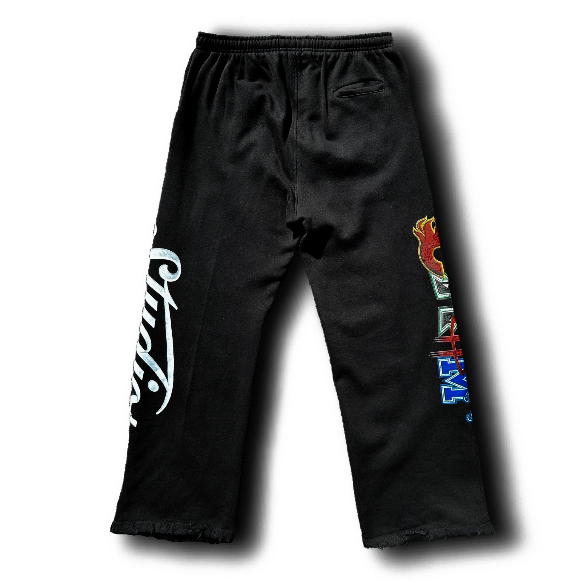 Wide leg 360GSM heavyweight 100% premium ring-spun cotton sweatpants with oversized Home Team CHRM logo on the right leg and an oversized Studios on the left leg. It also features a monochrome CHRM Studios clover logo near the left front pocket.